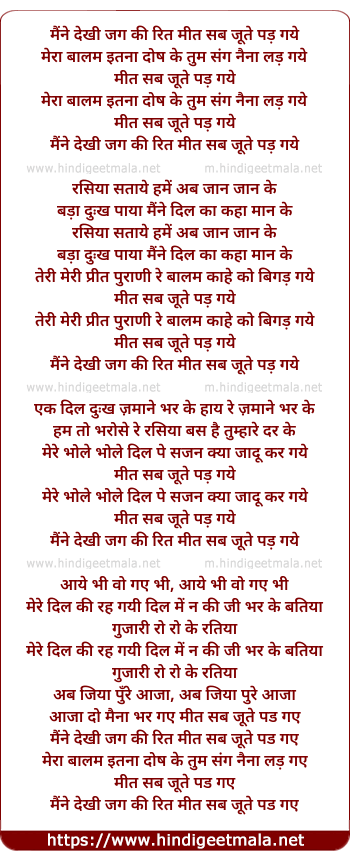 Lyrics of Maine Dekhi Jag Ki Reet Meet Sab Jhuthe Pad Gaye - मैंने देखी जग की रित मीत सब जूते पड़ गये