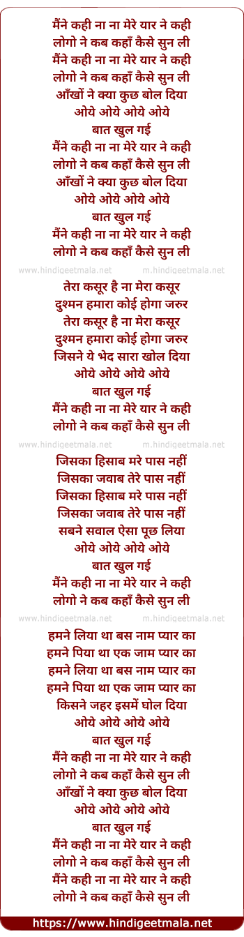 Lyrics of Maine Kahi Na Mere Yaar Ne Kahi - मैंने कही ना मेरे यार ने कही
