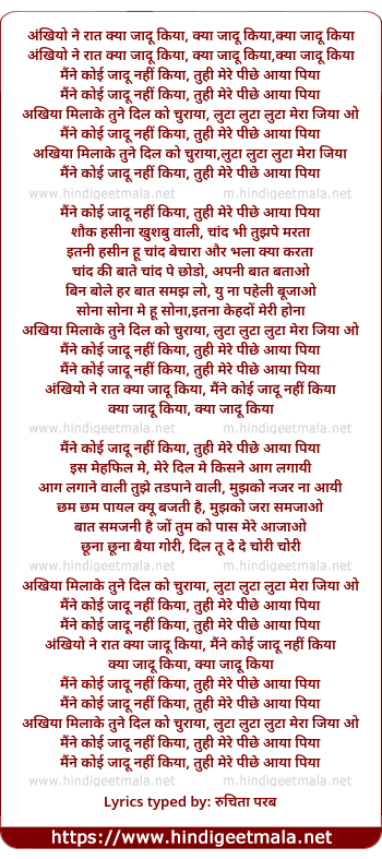 Lyrics of Maine Koyi Jaadu Nahi Kiya (Ankhiyo Ne Raat Kya Jadu Kiya) - मैंने कोई जादू नहीं किया (अंखियो ने रात क्या जादू किया)