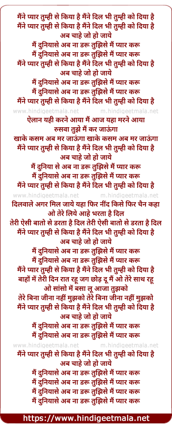 Lyrics of Maine Pyaar Tumhi Se Kiya Hai - मैंने प्यार तुम्ही से किया है