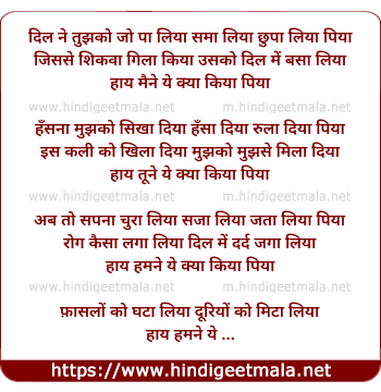 Lyrics of Maine Yeh Kya Kiya Piya - दिल ने तुझको जो पा लिया समा लिया छुपा लिया पिया