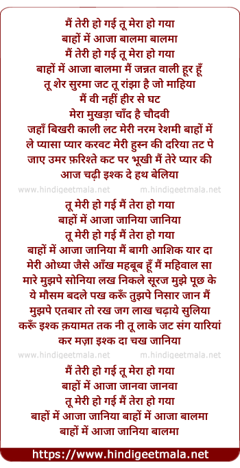 Lyrics of Main Teri Ho Gayi Tu Mera Ho Gaya - मैं तेरी हो गई तू मेरा हो गया