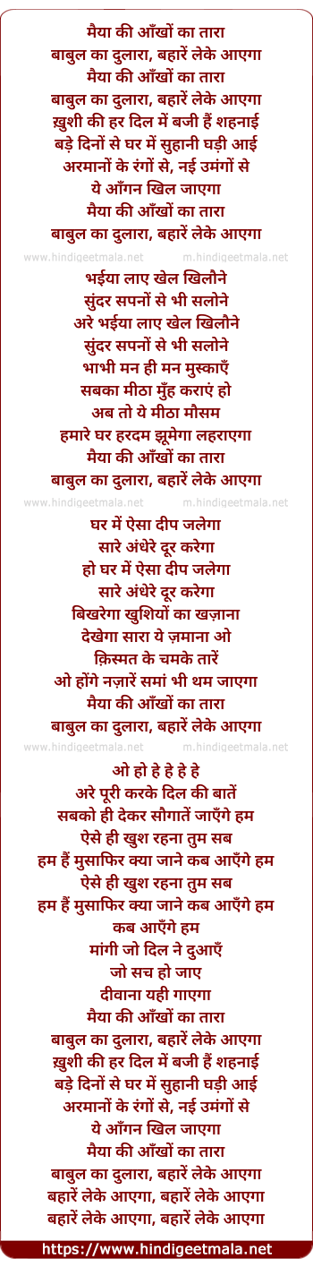 babul ka dulara, bahare leke aayega