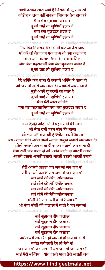 Lyrics of Maiya Mera Muqaddar Sanvaar De - मैयां मेरा मुकददर सवार दे