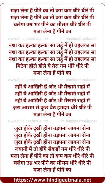Lyrics of Maja Lena Hai Pine Kaa - मज़ा लेना हैं पीने का तो कम कम धीरे धीरे पी