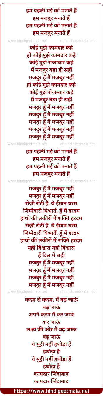 Lyrics of Majdoor Hu Mai Majbur Nahi - हम पहली मई को मनाते हैं