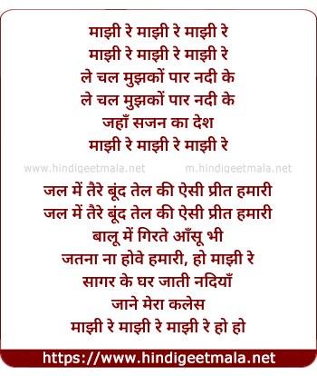 Lyrics of Majhi Re Majhi Re - माझी रे माझी रे