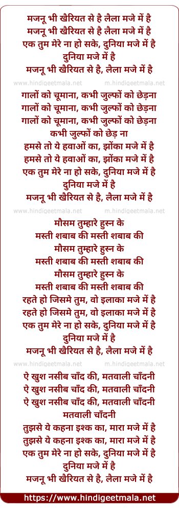 Lyrics of Majnu Bhi Khaireeyat Se Hai - मजनू भी खैरियत से है लैला मजे में है