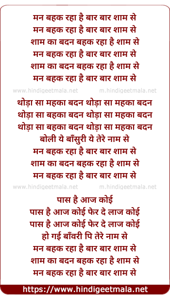 Lyrics of Man Bahak Raha Hai - मन बहक रहा है