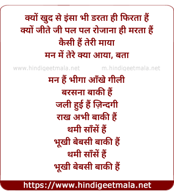 Lyrics of Man Hain Bhiga Aankhe Gili - I - क्यों खुद से इंसा भी डरता ही फिरता हैं