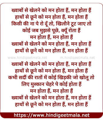 Lyrics of Man Hota Hai Man Hota Hai - ख्वाबों से खेलने को मन होता हैं, मन होता हैं