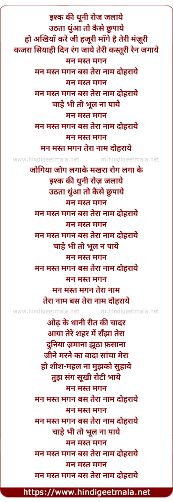 Lyrics of Man Mast Magan - मन मस्त मगन