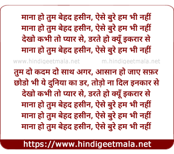 Lyrics of Mana Ho Tum Behad Haseen - माना हो तुम बेहद हसीन, ऐसे बुरे हम भी नहीं