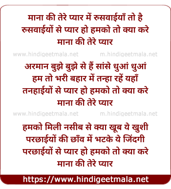 Lyrics of Mana Kee Tere Pyar Me Rusavayiya Toh Hain - माना की तेरे प्यार में रुसवाईयाँ तो है