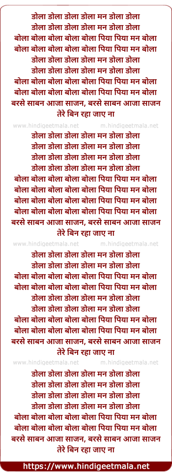Lyrics of Mane Dola Dola - मन डोला डोला