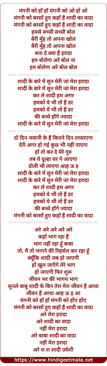 Lyrics of Mangni Ko Barso Hue - मंगनी को बरसों हुये
