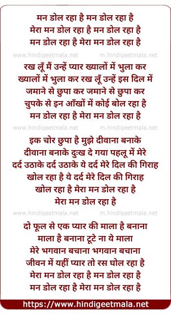Lyrics of Mann Dol Raha Hai - मन डोल रहा है मन डोल रहा है