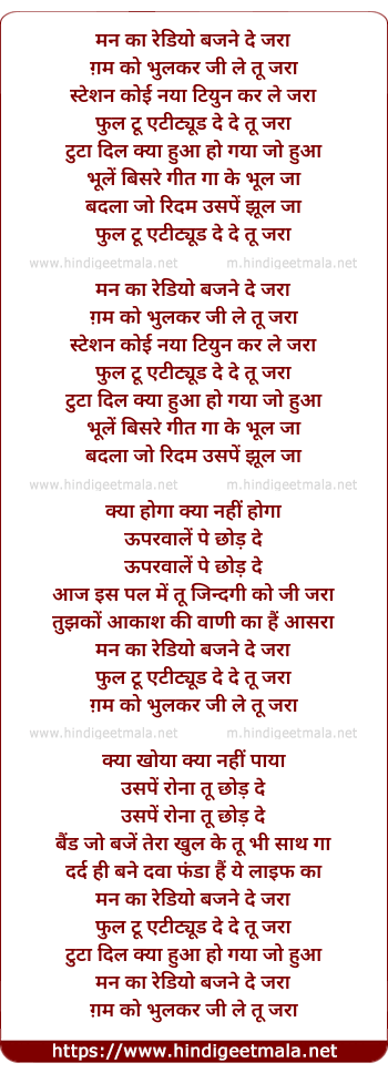 Lyrics of Mann Ka Radio Bajane De Jara - मन का रेडियो बजने दे जरा