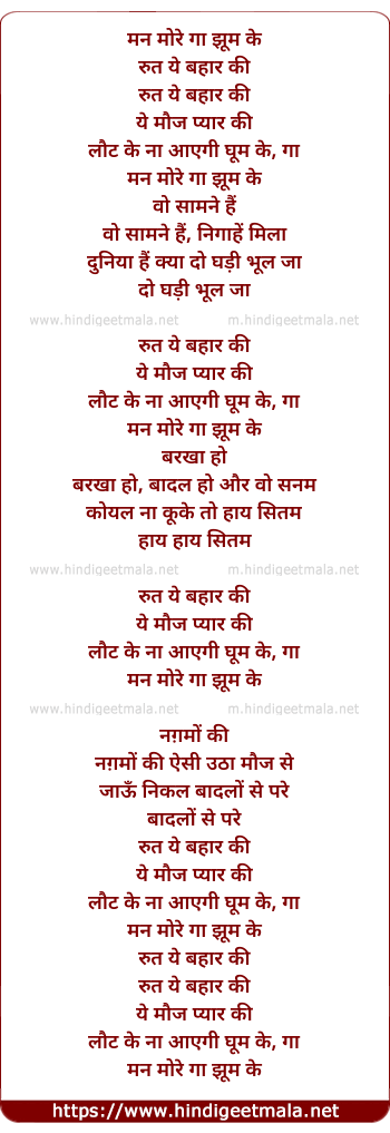 Lyrics of Man More Ga Jhum Ke - मन मोरे गा झूम के