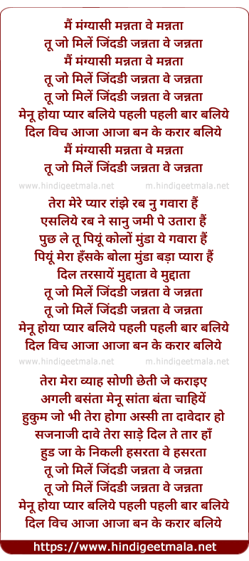 Lyrics of Mannata Ve Mannata - मन्नता वे मन्नता