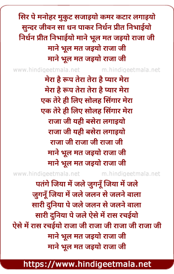 Lyrics of Manne Bhul Mat Jaiyo Rajaji - माने भूल मत जाइयो राजाजी