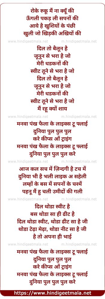 Lyrics of Manva Likes To Fly - मनवा लाइक्स तो फ्लाई