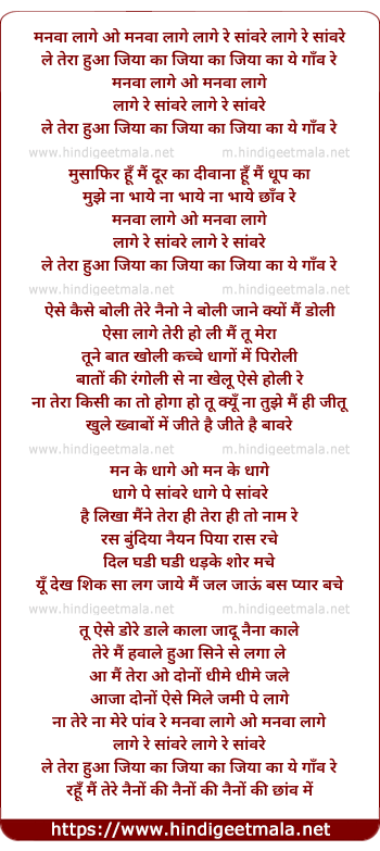 manwa laage o manwa laage laage re sanware laage re sanware