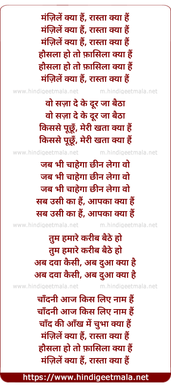 Manzile Kya Hai Raasta Kya Hai - मंज़िलें क्या हैं, रास्ता क्या हैं