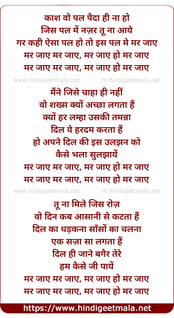 Lyrics of Mar Jaaye (Reprise) - काश वो पल पैदा ही ना हो