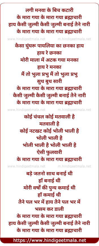Lyrics of Mara Gaya Brahmachari - मारा गया ब्रह्माचारी