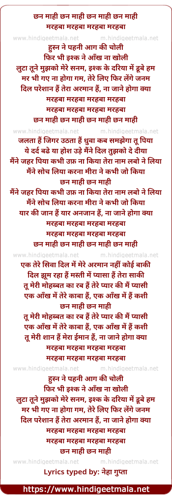 Lyrics of Marhaba Marhaba - मरहबा मरहबा
