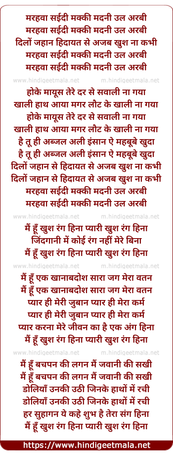 Lyrics of Marhaba Sayyidi Makki Madani Ul Arabi - मरहवा सईदी मक्की मदनी उल अरबी