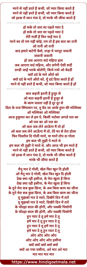 Lyrics of Marne Se Nahi Darte Hai - मरने से नहीं डरते हैं