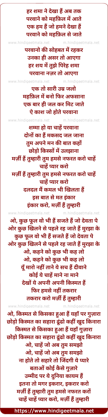 Lyrics of Marzi Hai Tumhari - मर्जी है तुम्हारी