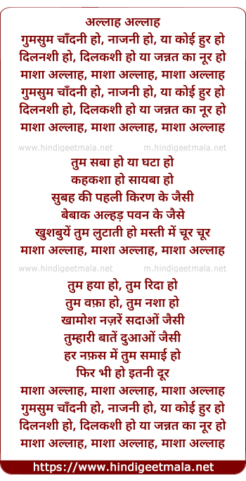 Lyrics of Masha Allah - माशा अल्लाह