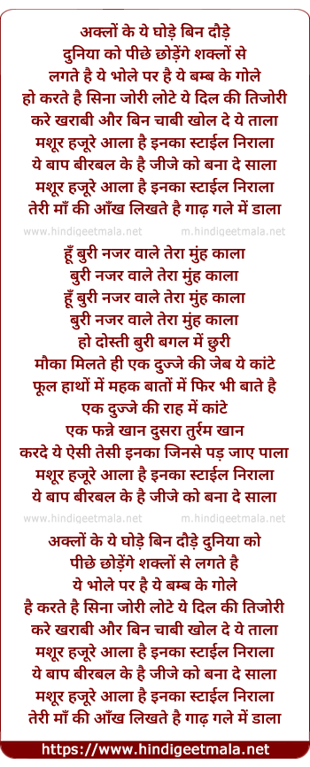 Lyrics of Mashhur Hazur-e-aala - मशहूर हजूर-ए-आला