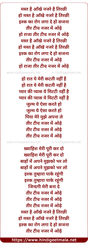 Lyrics of Mast Hai Aankhe - मस्त है आँखे