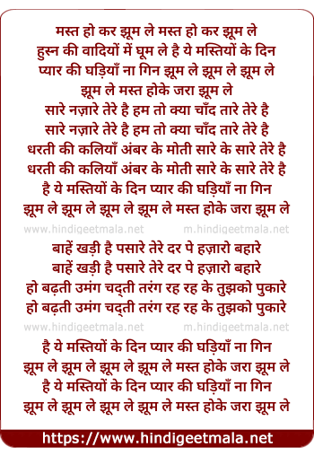Lyrics of Mast Hokar Zara Jhum Le - मस्त होकर जरा झूम ले