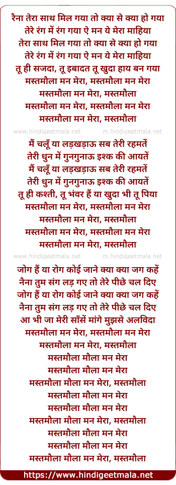 Poetic Translation - Lyrics of Mast Maula - रैना