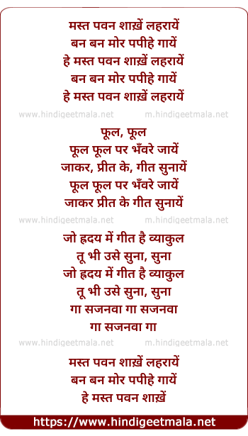 Lyrics of Mast Pawan Shakhe Laharaye - मस्त पवन शाख़ें लहरायें