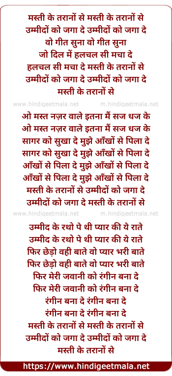 Lyrics of Masti Ke Tarane - मस्ती के तराने