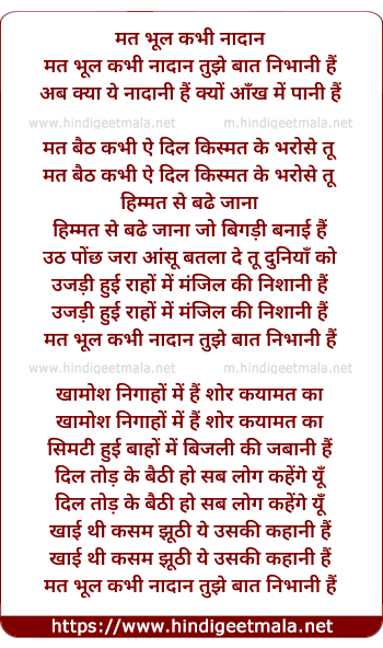 Lyrics of Mat Bhul Kabhi Nadaan - मत भूल कभी नादान