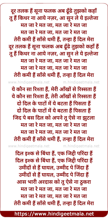 Lyrics of Mat Jaa Re - मत जा रे