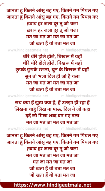 Lyrics of Mat Jaa (Remix) - जानता हू कितने आंसू बह गए, कितने गम पिघल गए