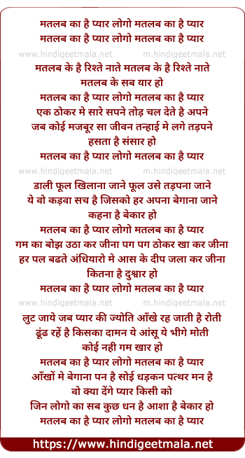 Lyrics of Matlab Ke Hai Rishte Naate - मतलब के है रिश्ते नाते