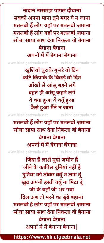 Lyrics of Matlabi Hai Log Yaha Par (Apno Me Mai Begana) (Part 2)
