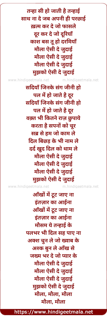Lyrics of Maula Aisi De Judai - मौला ऐसी दे जुदाई