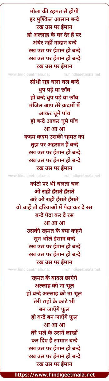 Lyrics of Maula Ki Rehmat Se Hogi Har Mushkil Aasaan - मौला की रहमत से होगी हर मुश्किल आसान