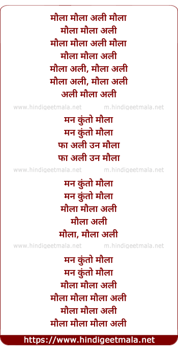 Lyrics of Maula Maula Ali Maula - मौला मौला अली मौला