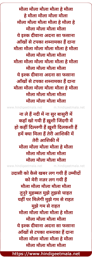 Lyrics of Maula Maula Maula